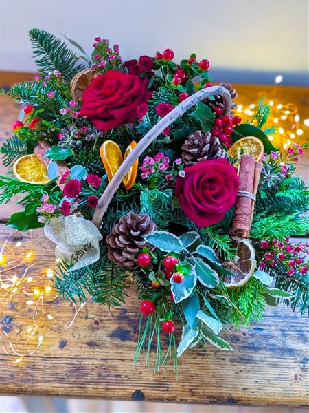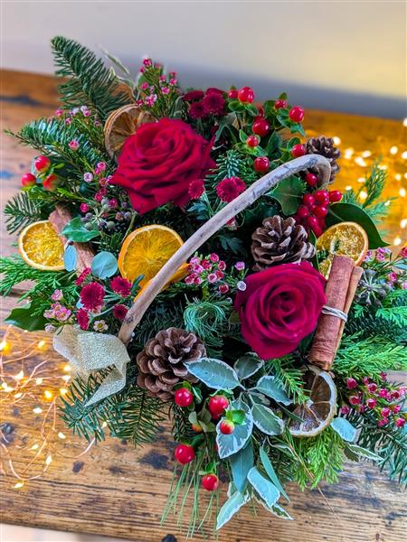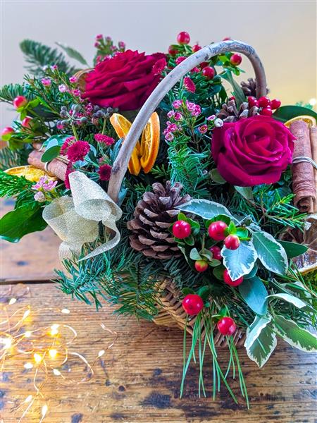 My 'Winter Warmer' Christmas basket arrangement is the ultimate sensory celebration of the season. This truly festive centrepiece is bursting with traditional aromas and rich colours, making it a perfect Christmas gift or elegant addition to your seasonal décor.
