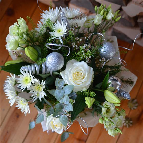 Named for the magic of Christmas itself, The Noelle Bouquet captures the serene beauty of a frosty winter morning. This elegant, predominantly white design is one of my most requested styles for those seeking a sophisticated, refined look that complements any modern or traditional festive setting.