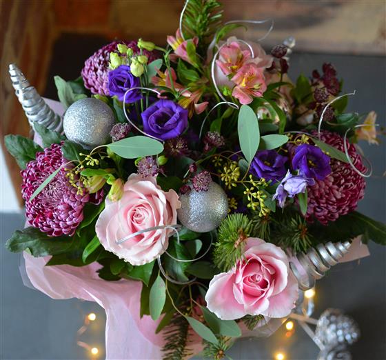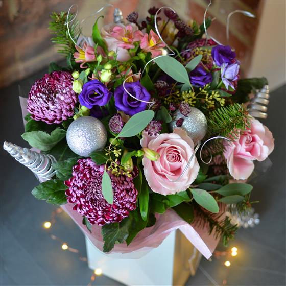 Looking for a Christmas bouquet that offers modern elegance and a touch of enchanting winter magic? My Sweet Silver Bouquet is a truly unique design that swaps traditional reds for a luxurious, icy palette of mauves, deep purples, and delicate pinks.