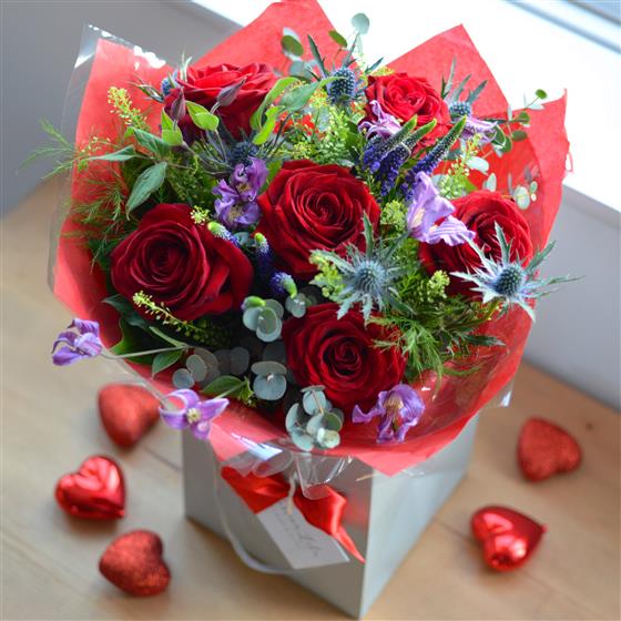 A romantic bouquet with a thoughtful twist—perfect for the leading lady in your life this Valentine's Day.
